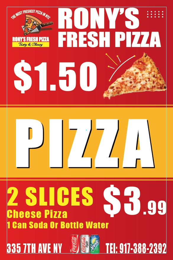 Welcome to Rony's Fresh Pizza, a hidden gem located at 355 7th Ave, New York. This eatery specializes in offering delicious and budget-friendly pizza options for everyone. With a menu featuring mouthwatering selections such as Pineapple With Ham, Buffalo Chicken With Ranch, and the hearty Meat Lover's pizza, every palate is catered to.